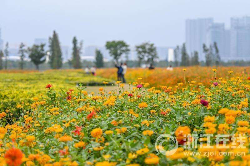 10月21日,杭州萧山钱江世纪城“杭州之窗”区域约1.5万平方米花海迎来最佳观赏期。