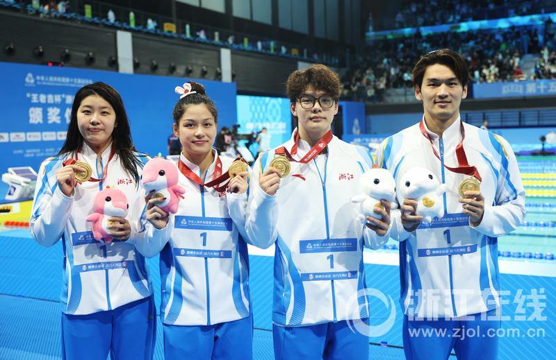 11月13日晚,十五届全运会游泳比赛继续在深圳大运中心游泳馆进行。在压轴登场的男女4×100米混合泳接力决赛中,以奥运冠军徐嘉余领衔的“浙江泳坛F4”(徐嘉余/谢以忱/余依婷/吴卿风),在激烈的竞争中称霸赛场,以3分42秒59的绝对优势摘得冠军。