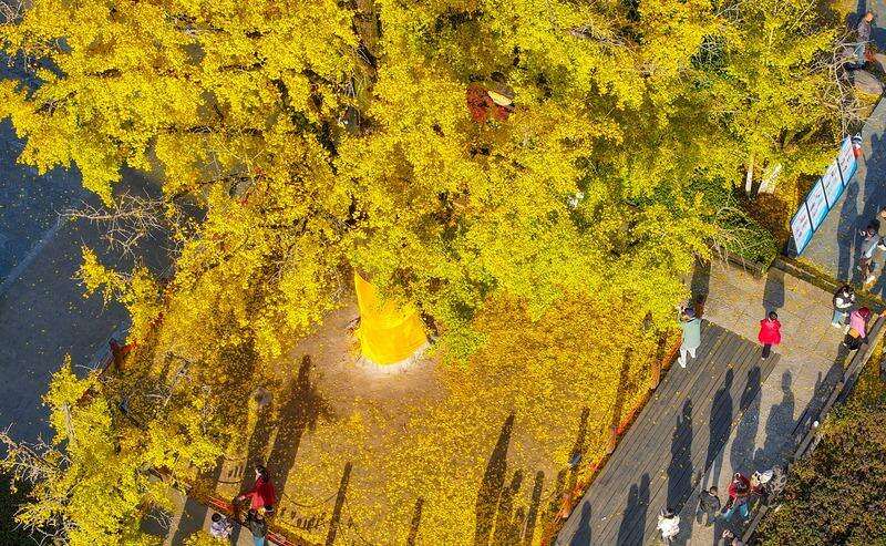 暖阳正当时!杭州白塔公园银杏金黄,小火车穿行冬日画卷