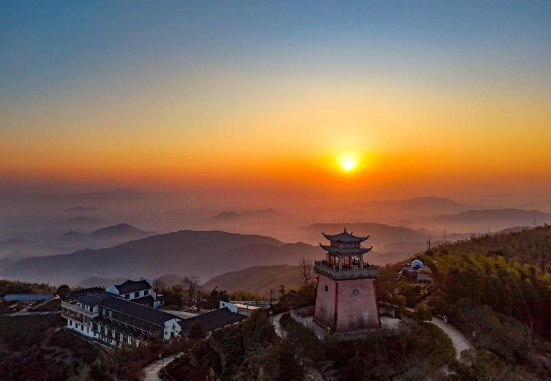 晴好天气回归!在杭州寺坞岭山顶,定格清晨第一缕暖阳