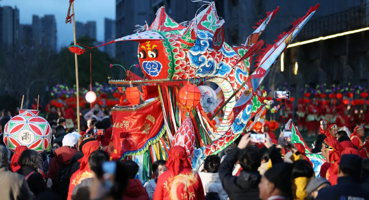 140米巨龙花灯点亮杭城 非遗与科技共舞闹元宵