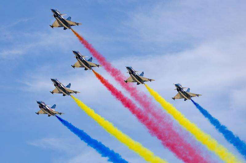 “空军蓝”致敬“中国红”——战鹰用航迹为祖国庆生