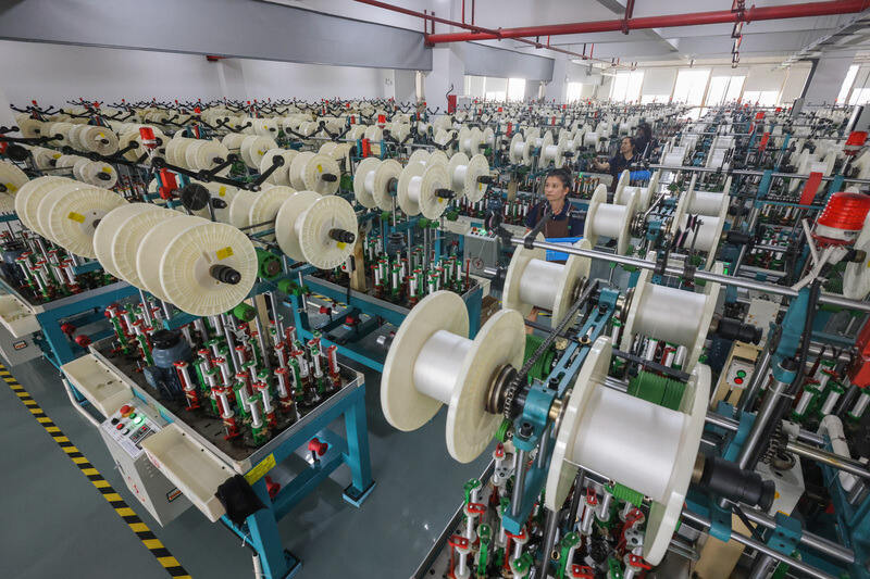 10月17日,浙江东阳歌山镇的现代钓具有限公司的智能化生产车间,上千台编织机飞速运转,工人们正忙碌在各自的岗位上赶制发往欧美,东南亚等国的订单。据悉,全国70%,全球近55%的渔线产自东阳市歌山镇。东阳市现代钓具有限公司是当地生产渔线的龙头企业,自今年10月份开始,企业进入了产销旺季,通过淘宝、天猫,拼多多等电商头部平台进行线上零售批发,并参与各类行业展会,积极开展国际贸易合作,全力冲刺四季度。