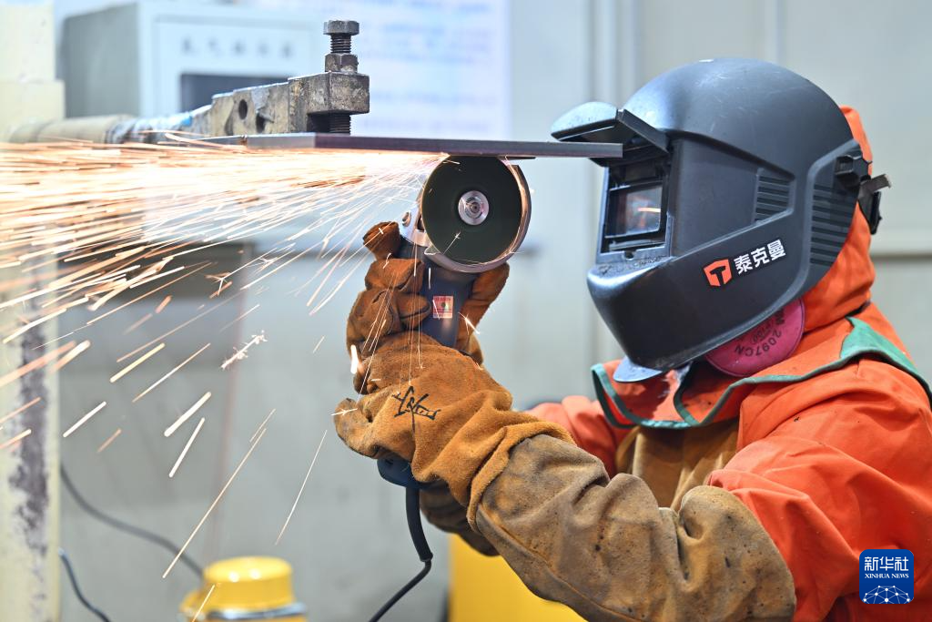 12月4日,选手在比赛中打磨焊口。