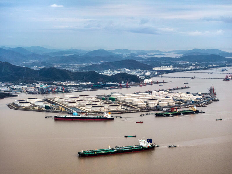 12月10日傍晚,30万吨级的希腊籍“希腊福斯”轮正停靠在舟山港外钓应急油品码头开展卸油作业,同一时间满载原油的超大型油轮“新海遼”、“沃德”轮正缓缓靠泊舟山册子油库码头、光汇油品码头。