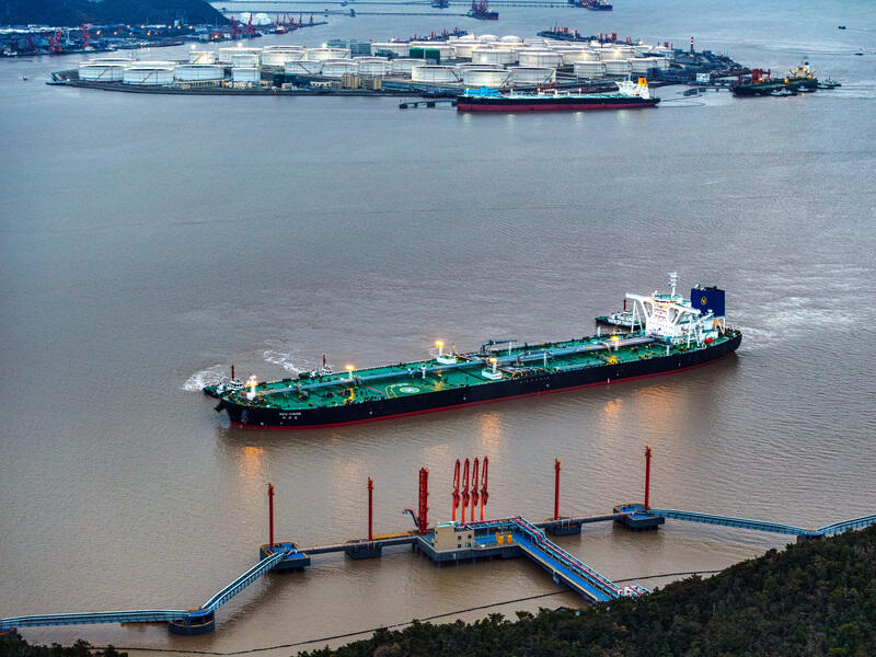 12月10日傍晚,30万吨级的希腊籍“希腊福斯”轮正停靠在舟山港外钓应急油品码头开展卸油作业,同一时间满载原油的超大型油轮“新海遼”、“沃德”轮正缓缓靠泊舟山册子油库码头、光汇油品码头。