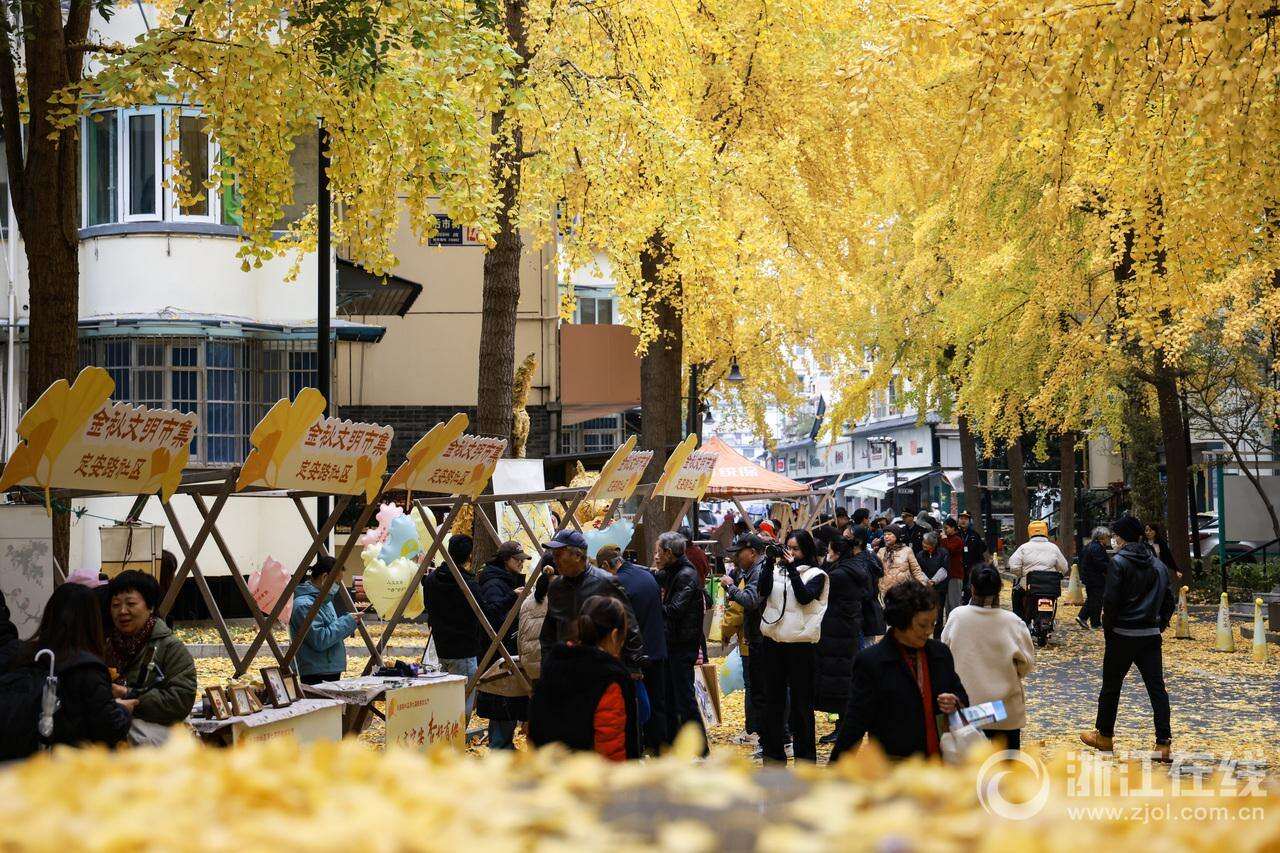 12月3日,杭州市上城区清波街道定安路社区第七届银杏文化节暨“银杏树下话文明”新时代文明实践活动在后市街的银杏林下举行。除了便民服务、美食品鉴、非遗手工和趣味游戏等活动,现场还布置了系列银杏主题景观,成了居民拍照打卡的好去处。