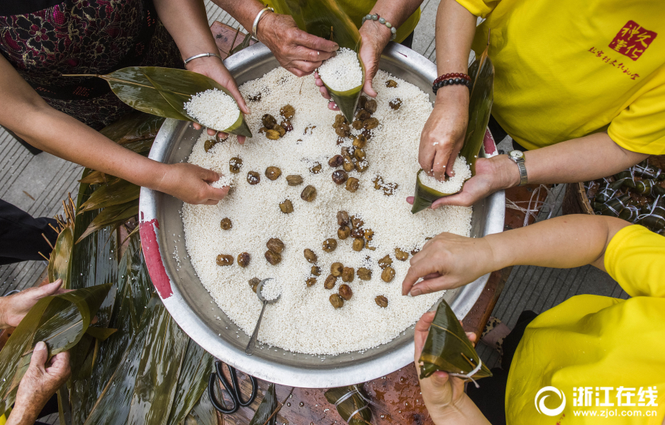 浙江在线6月10日讯(浙江在线拍友 朱海伟 摄)6月10日,“我的礼堂 我的家”端午文化周活动在温岭彭家村拉开序幕,村民们齐聚文化礼堂,包粽子、做香囊、观赏演出,提前度过了一个充满家乡味道的端午节。