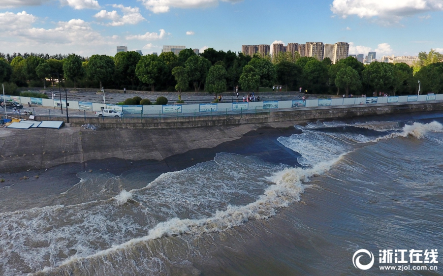 浙江在线8月29日讯(浙江在线记者 吴煌 倪雁强 刘方 摄)8月28日,农历七月十八,钱塘江杭州下沙七格堤坝,汹涌的钱塘江潮水汹涌而来。每年农历七月十八,为农历7月望汛大潮,俗称“鬼王潮”,常常胜过八月望汛大潮。