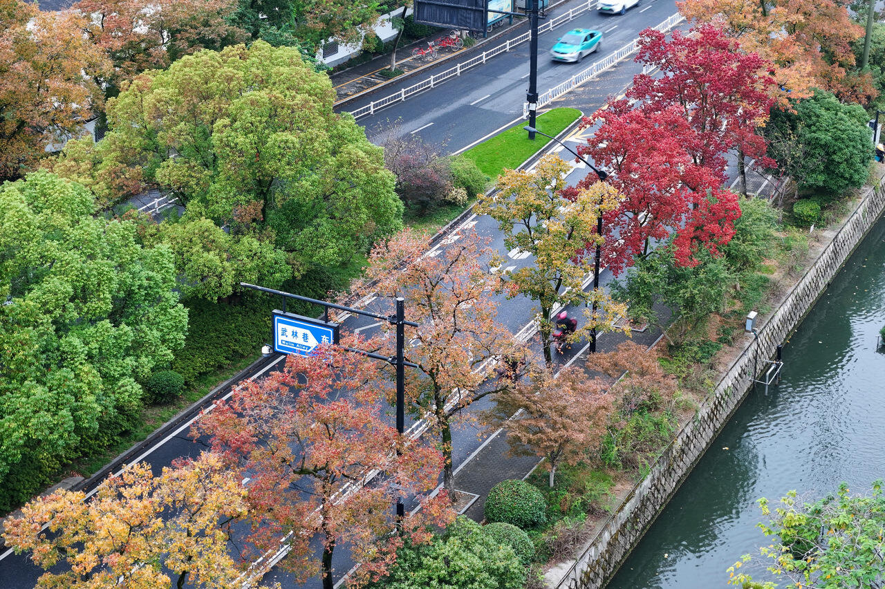 11月8日,随着雨水和冷空气的陆续上线,杭城的秋色也渐渐浓郁起来。而保俶北路两侧的400多棵乌桕树叶开始逐渐变色,红、黄、绿等多种颜色交织在一起,仿佛被打翻的调色盘,五彩斑斓,旖旎至极。【详细】