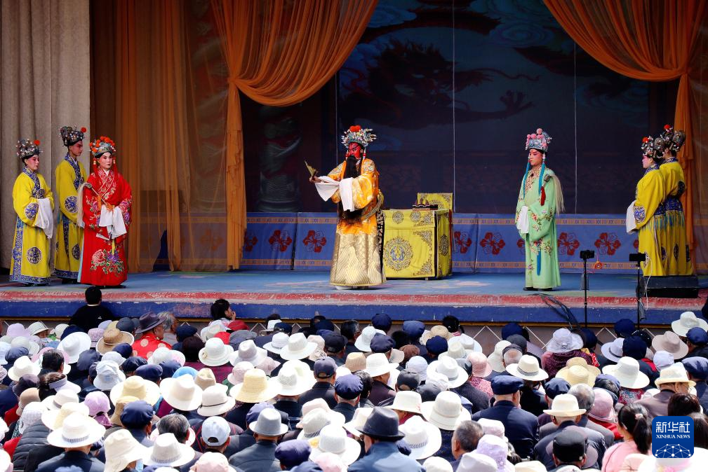4月6日,在甘肃省平凉市静宁县城关镇西关村,村民在观看秦腔表演。