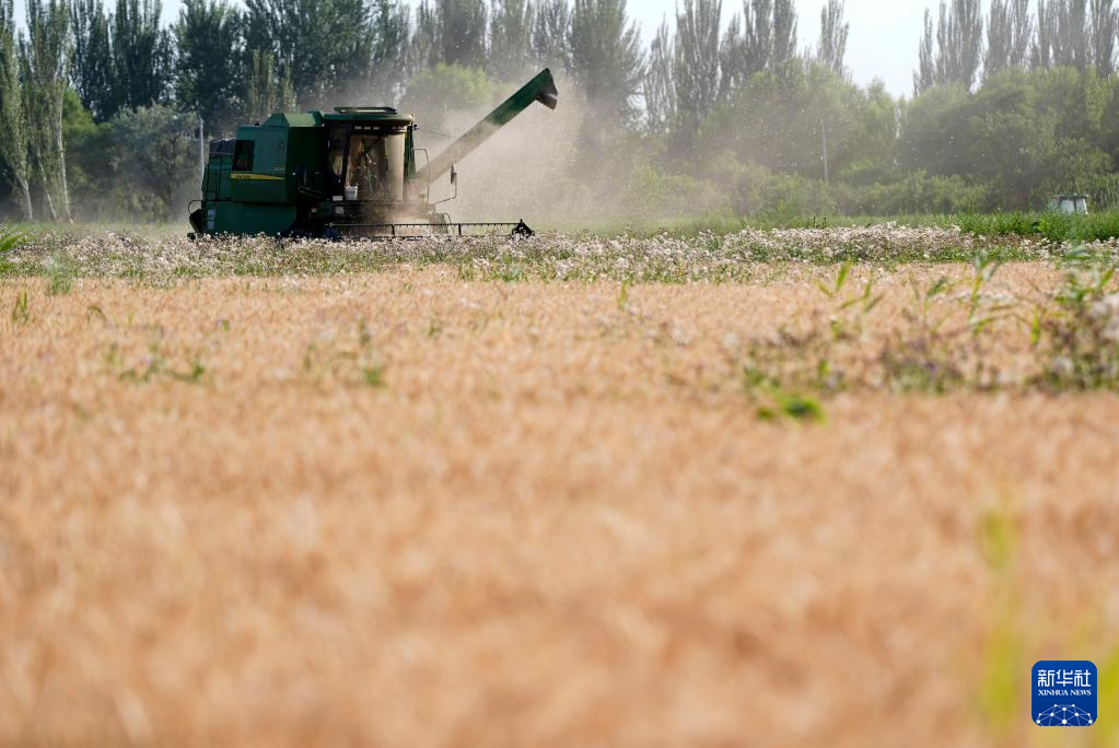 近日,宁夏银川市引黄灌区迎来小麦收获季,当地农户抢抓晴好有利天气,开展夏收工作。
