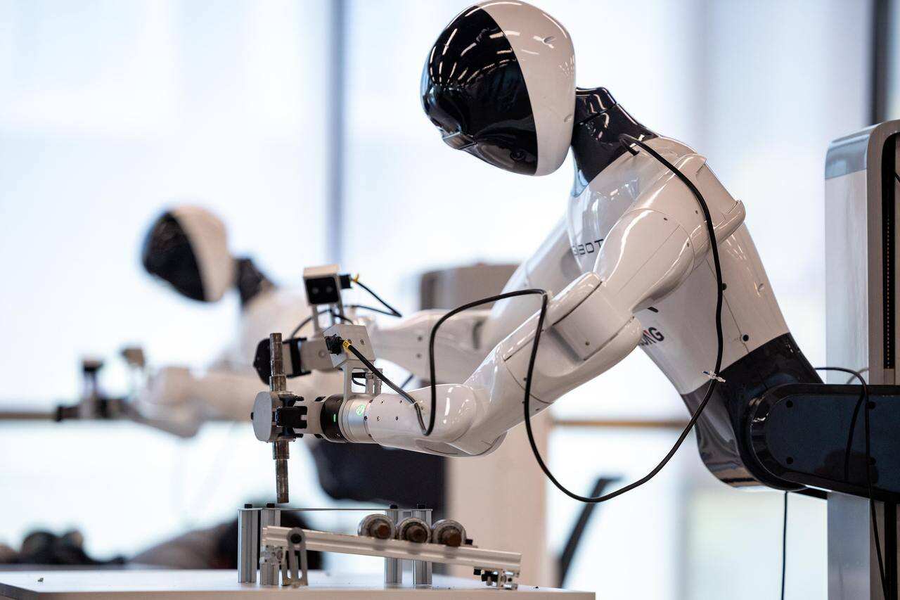 9月14日,浙江上虞,杭州湾具身智能创新中心的数据采集区内,50台人形机器人正跟着技术人员学习各种岗位技能。 现场,工作人员通过手柄操控“手把手”引导人形机器人完成叠衣服、分文件、打螺丝等动作,以此积累不同作业场景的训练数据。目前,该数据采集中心正在采集的场景有10多个,预计今年底会增加到25个,为今后人形机器人进入真实生产线,积累实操经验。