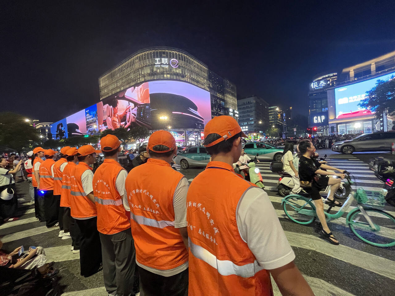 10月1日国庆长假第一天,杭州湖滨路口再现“最美人墙”暖心守护。今年的“最美人墙”全新升级了“闸开式”3.0矩阵,通过科学分队和灵活变换,应对湖滨路口的大客流挑战。“最美人墙”已成为杭州假日的一道特色风景。