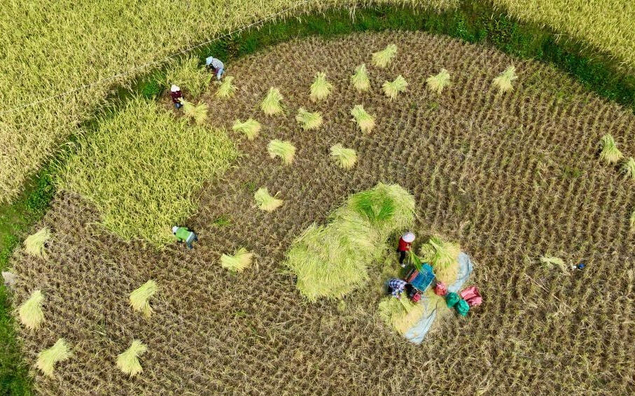 10月2日,国庆长假进入第二天,浙江省丽水云和梯田游客如织。 国庆长假期间正是高山稻谷成熟期,有“中国最美梯田”、“最佳湿地”等美誉的云和梯田稻谷飘香,吸引了全国各地游客。随着乡村振兴的推进,乡村观光旅游成为很多城市游客的首选。