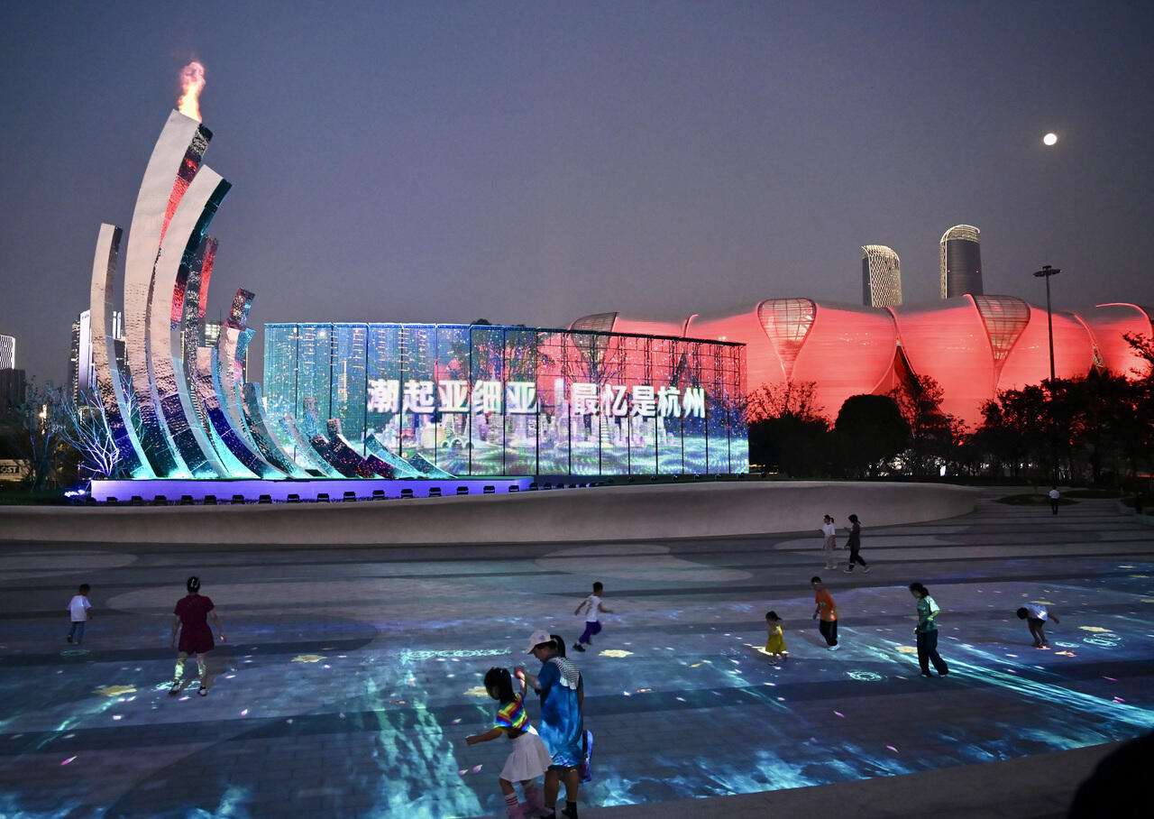 杭州奥体中心火炬公园向公众开放 再现亚运圣火场景