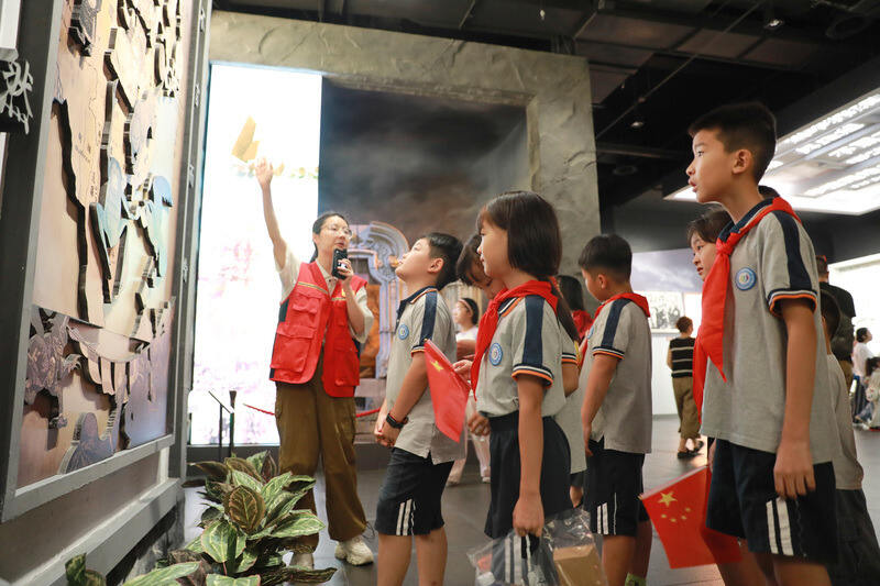 2025年10月7日,小学生在浙江省嘉兴市南湖革命纪念馆参观。