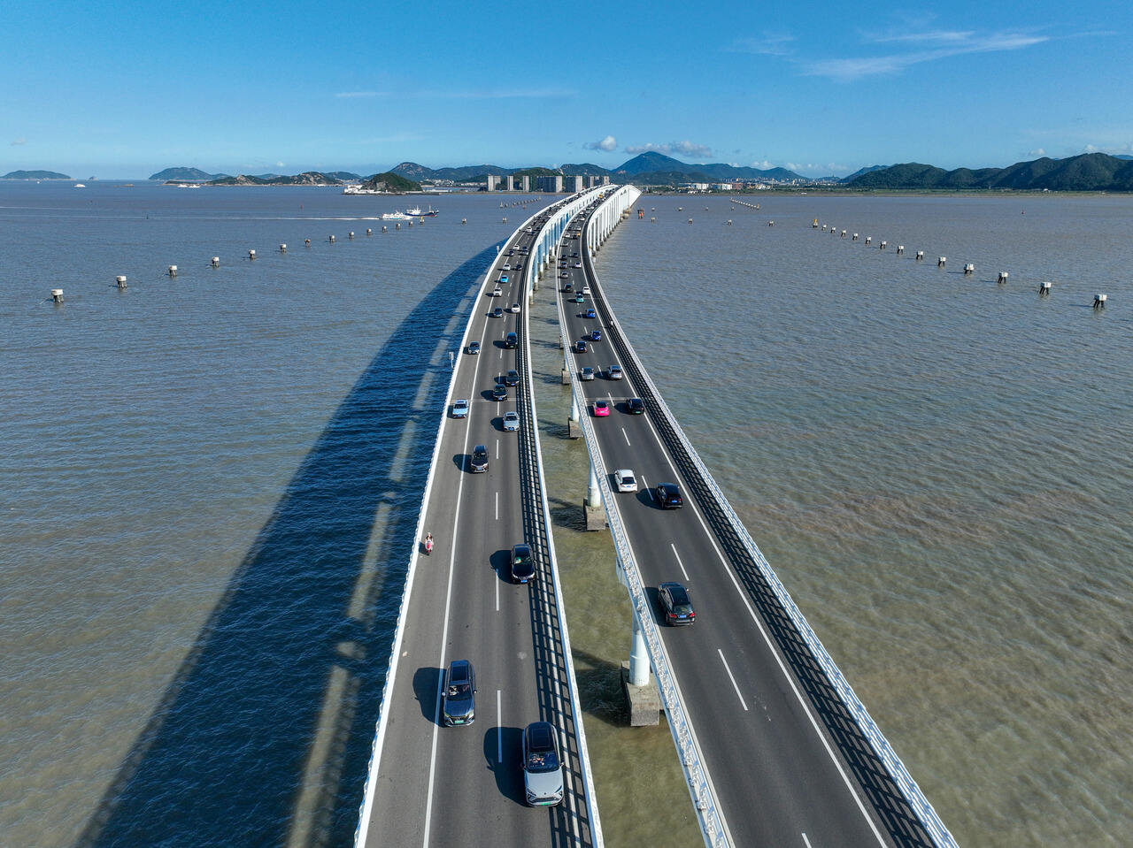 10月7日,舟山市普陀区,随着国庆假期接近尾声,返程车辆行驶在朱家尖海峡大桥上。