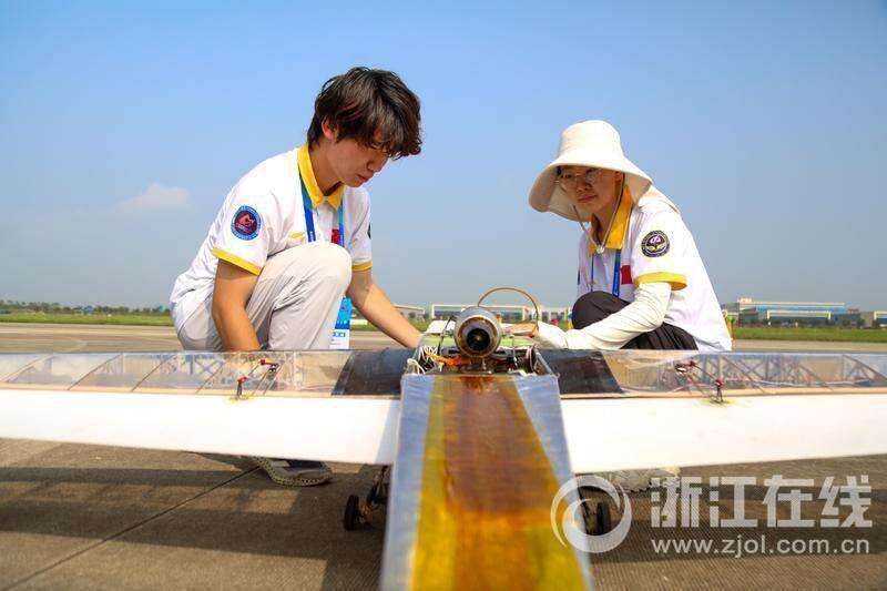 10月8日,在浙江省湖州市德清县莫干山通用机场,选手在组装调试飞行器。