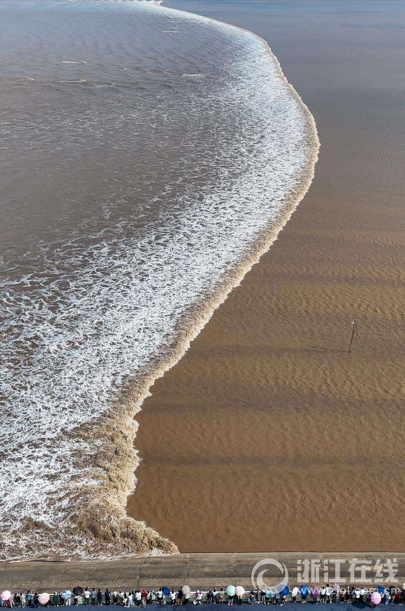 万人江堤共潮生 钱塘江畔现“天下第一潮”盛景