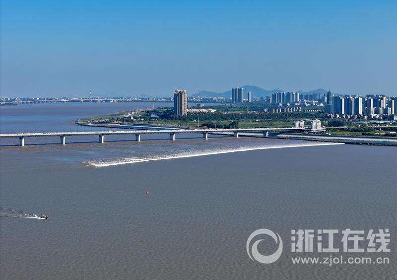 万人江堤共潮生 钱塘江畔现“天下第一潮”盛景