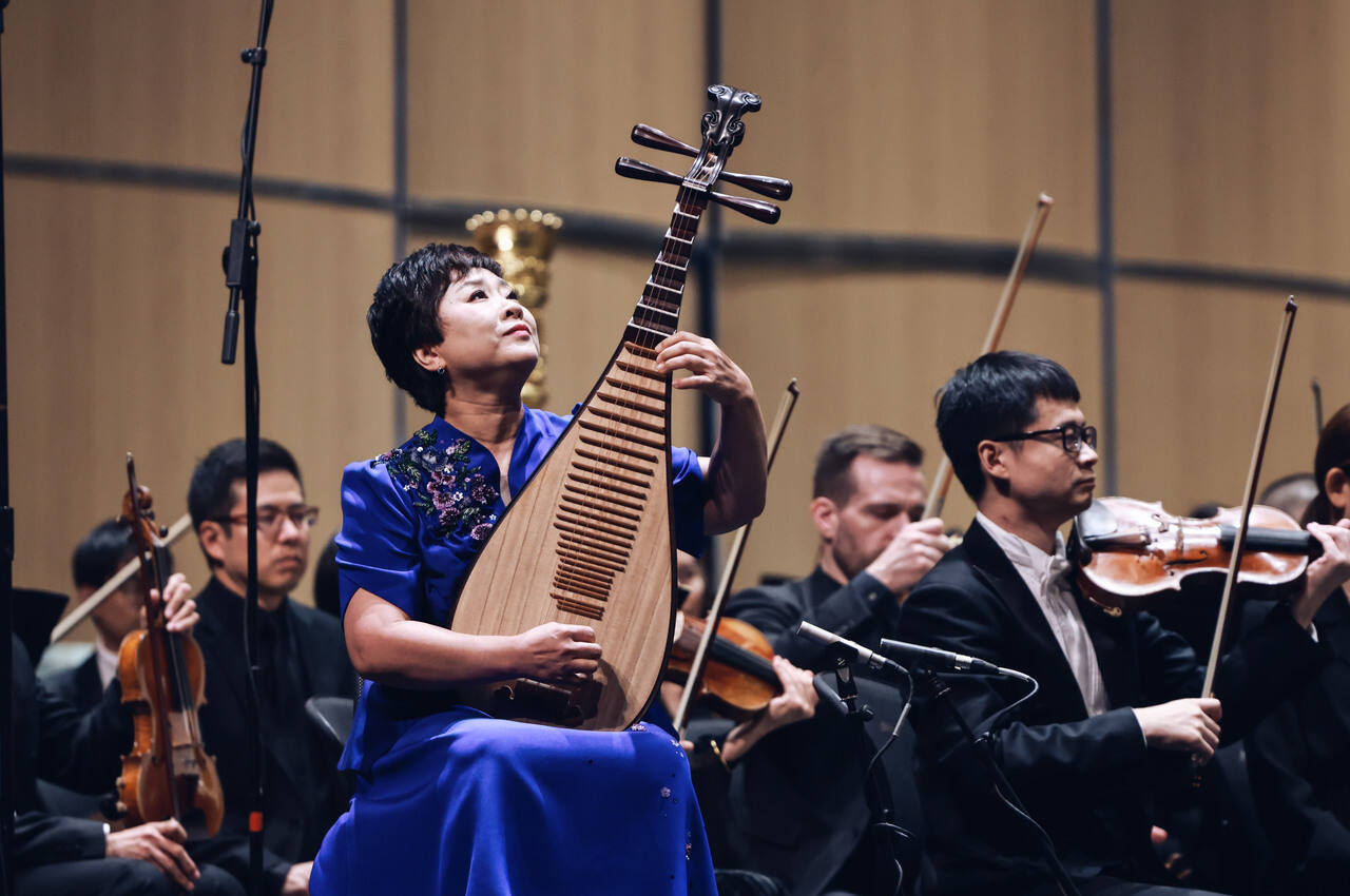 10月18日晚,浙江交响乐团与美国费城交响乐团在杭州运河大剧院联袂献演“良渚之光”专场音乐会,由指挥家胡咏言执棒,呈现中西经典音乐作品。 音乐会由中美两大乐团合作,演绎四部作品:浙江原创交响乐《诗画浙江》、梅森·贝茨作曲的《春江花月夜》(男中音刘涛、女高音余先垚献唱)、吴祖强与刘德海改编的琵琶协奏版《春江花月夜》(琵琶演奏家杨靖独奏),以及贝多芬《第六交响曲》。