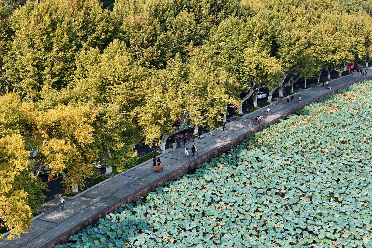 北山路的梧桐树开始黄了 西湖秋色渐浓了