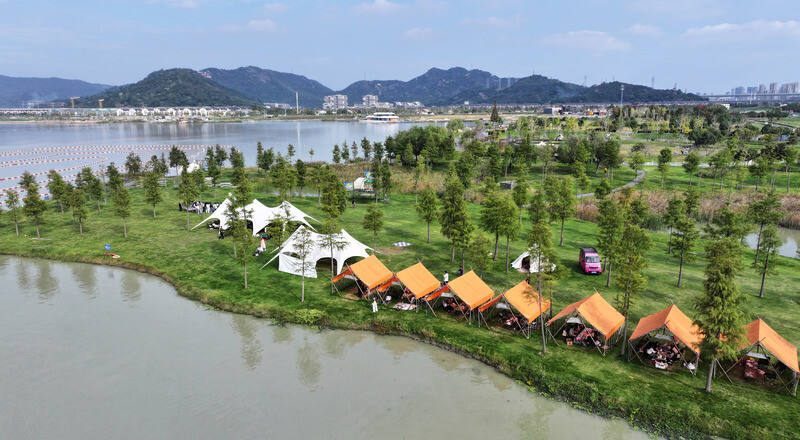 11月8日,台州市天高云淡,天气晴好,许多市民来到当地路桥区桐屿街道飞龙湖畔露营,拥抱自然,听闻桂花的芳香,乐享周末好时光。