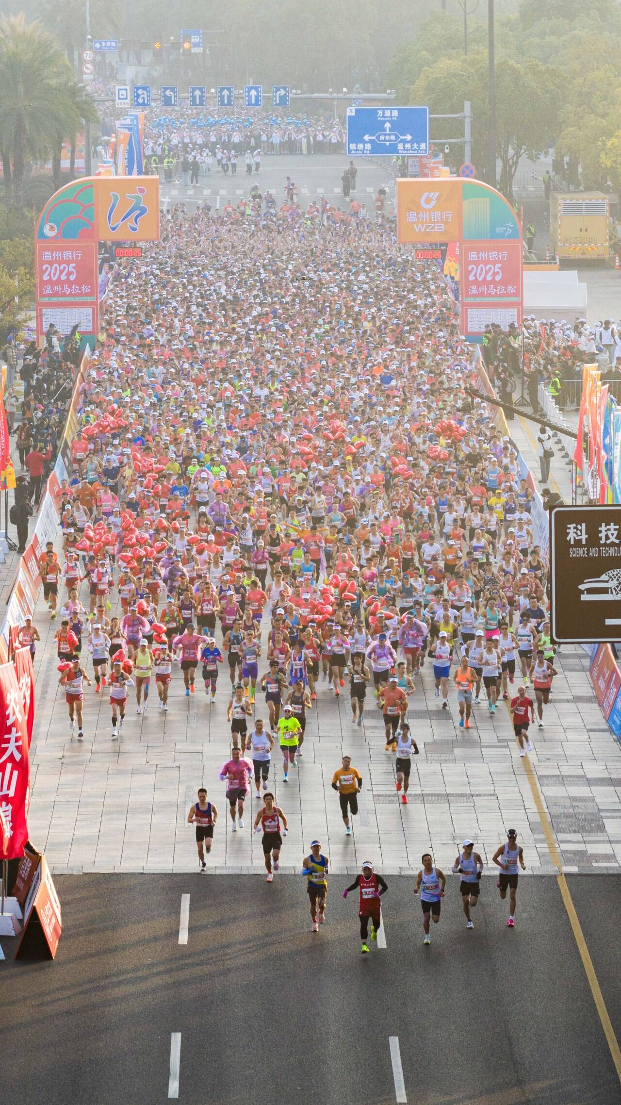 12月7日,2025温州马拉松在温州市世纪广场鸣枪开跑,17000名跑者齐聚瓯越大地,以奔跑致敬活力温州。