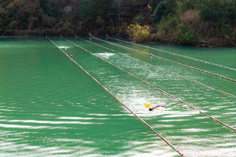 2025年12月10日,浙江省湖州市长兴县冬泳基地,冬泳爱好者们正在冬泳。