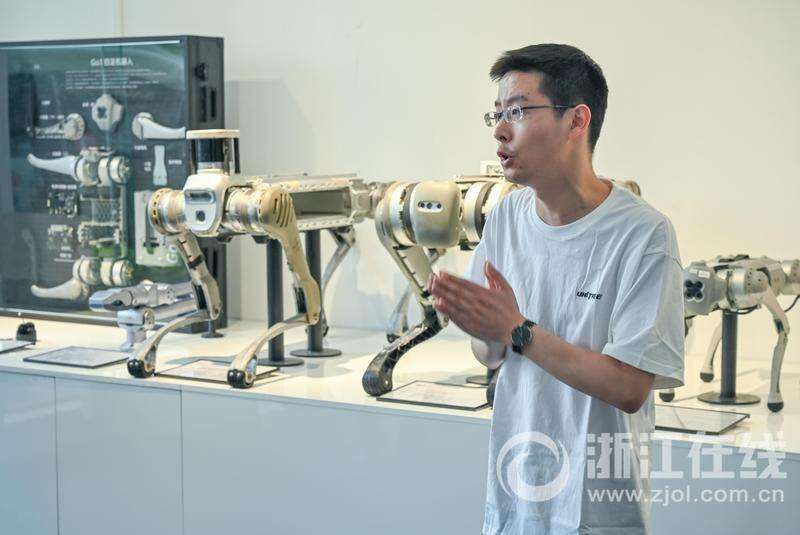 宇数科技创始人王兴兴在介绍他们研制的各种四足机器人