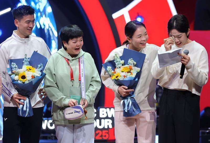 12月21日晚,世界羽联世界巡回赛总决赛当日比赛结束后,中国羽毛球协会为中国羽毛球队四位功勋球员陈清晨、郑思维、黄雅琼、刘雨辰举行退役仪式,感谢他们用青春和汗水捍卫了国羽的荣耀,祝福他们在人生的新赛道上一切顺利。