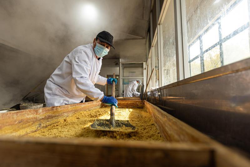 2026年1月6日,在温岭市坞根镇万顺红糖博览园,制糖师傅用传统古法技艺熬制红糖。