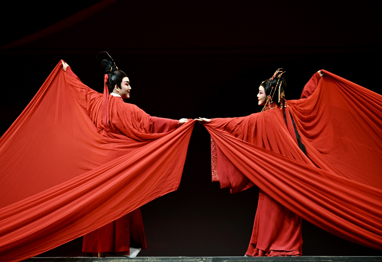 蔡浙飞、陈辉玲表演越剧《孔雀东南飞•惜别离》。