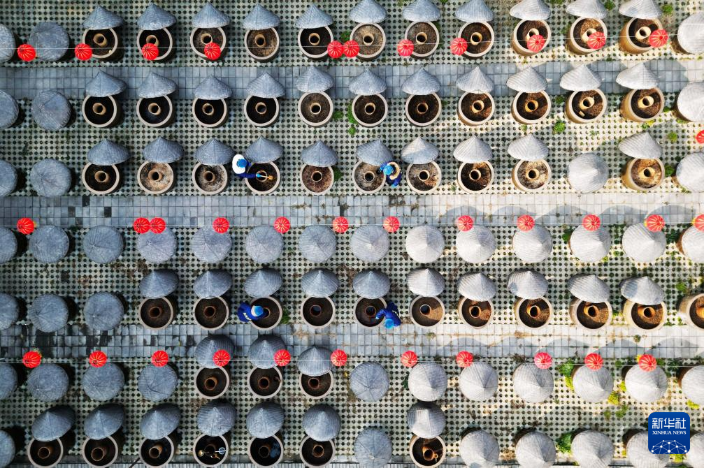 在山东省滕州市的传统酱油酿造基地,数百口酱缸在冬日暖阳下整齐列阵,酿酱工人手持工具娴熟翻晒,琥珀色的酱汁在陶缸中泛起细腻涟漪。