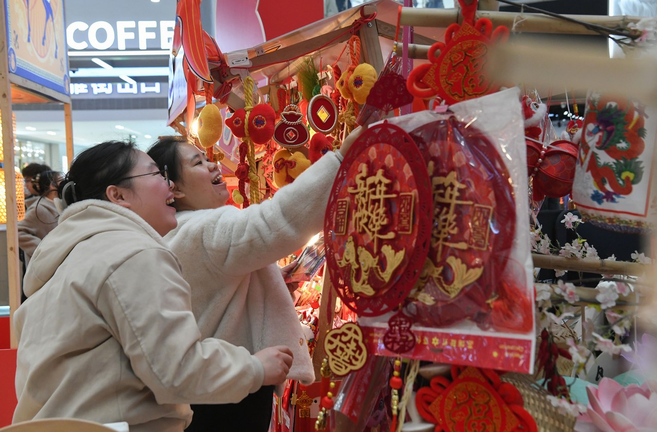 2026年1月31日,金华世贸城市广场年货市集上,市民在选购新年饰品。