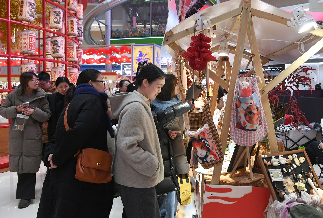 2026年1月31日,金华世贸城市广场年货市集摊位上的手工艺品。