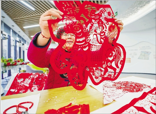 1月30日,绍兴市柯桥华舍街道纺都社区内年味浓厚,剪纸非遗传承人钱禄萍的马年生肖系列剪纸“剪”出马年新韵。