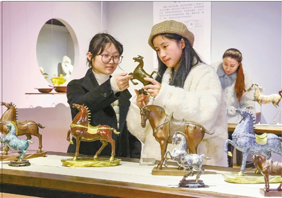 1月30日,在永康浙江神雕雕塑工艺有限公司铜雕艺术馆,各类马年主题的铜雕作品,吸引不少年轻人前来打卡。