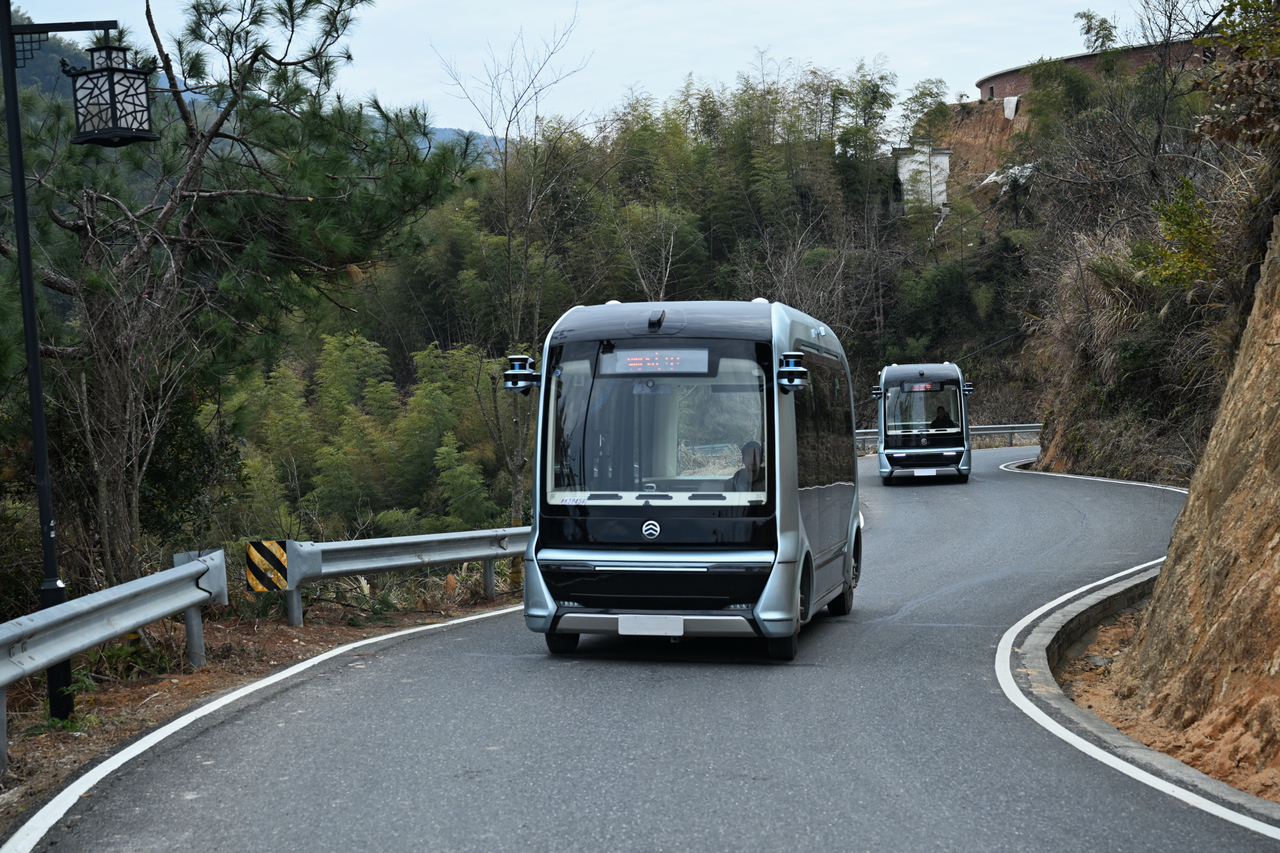 2月3日,造型新颖的无人驾驶小巴在松阳县陈家铺村实地测试。该小巴为纯电动车型,能精准感知山村的复杂路况,实现自动循迹、避障、跟车、停靠等功能。