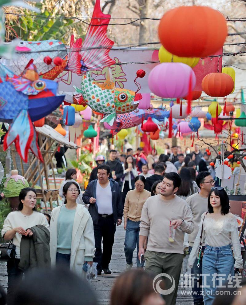 2月15日,春节假期首日,杭州小河直街宋韵盎然,市民与游客步入街区,宛若置身宋代画卷。
