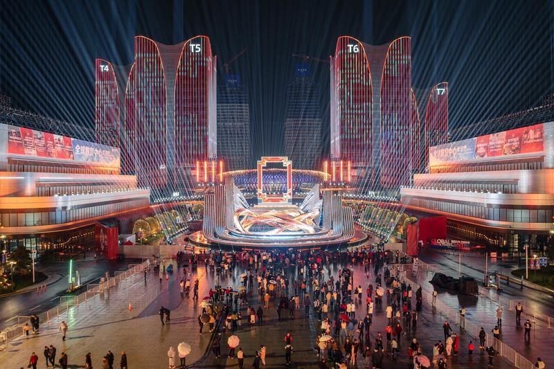 2月19日,浙江省义乌市全球数贸中心2026年春晚分会场主舞台前围满了前来观看的游客。