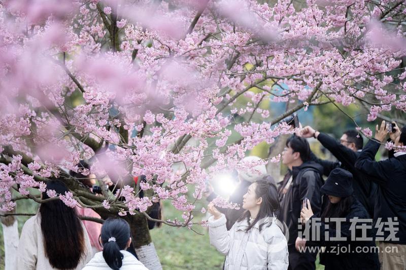 2月24日,杭州太子湾公园,部分樱花和郁金香的早花品种绽放,慕名而来的市民和游客驻足观赏。
