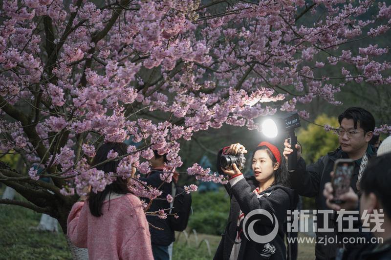 2月24日,杭州太子湾公园,部分樱花和郁金香的早花品种绽放,慕名而来的市民和游客驻足观赏。