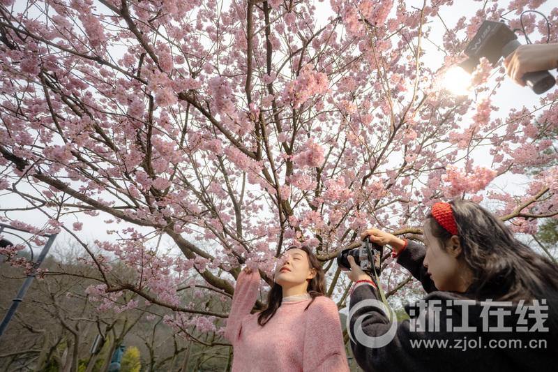 2月24日,杭州太子湾公园,部分樱花和郁金香的早花品种绽放,慕名而来的市民和游客驻足观赏。