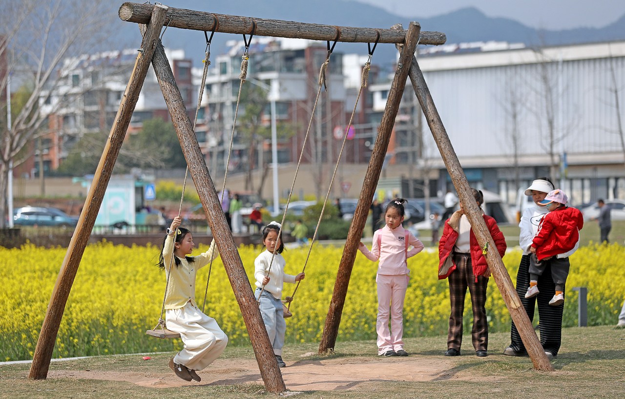 3月15日,杭州建德市更楼街道城南城市田园600亩油菜花海进入最佳观赏季,“城南花又开”主题花田市集热闹启幕。