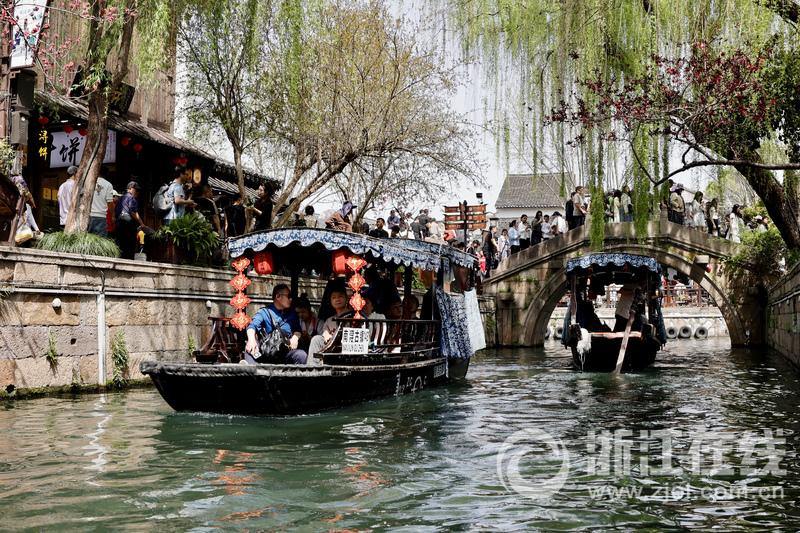 4月5日,清明假期,南浔古镇春意盎然,白墙黛瓦映碧水,小桥流水入画来。游人漫步青石板路,乘舟穿行河道,沉浸式感受水乡古韵。
