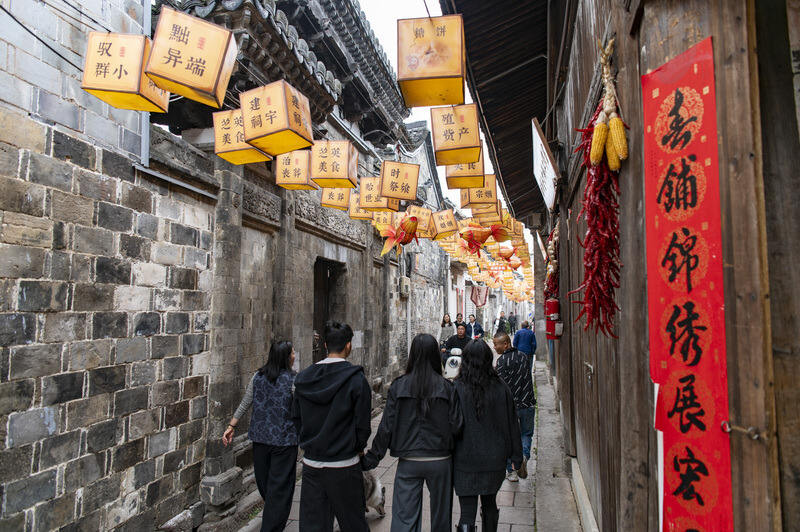 10月31日,浙江省金华市永康芝英古镇第四届晒秋文旅活动中,引来各地游客在古街游玩。