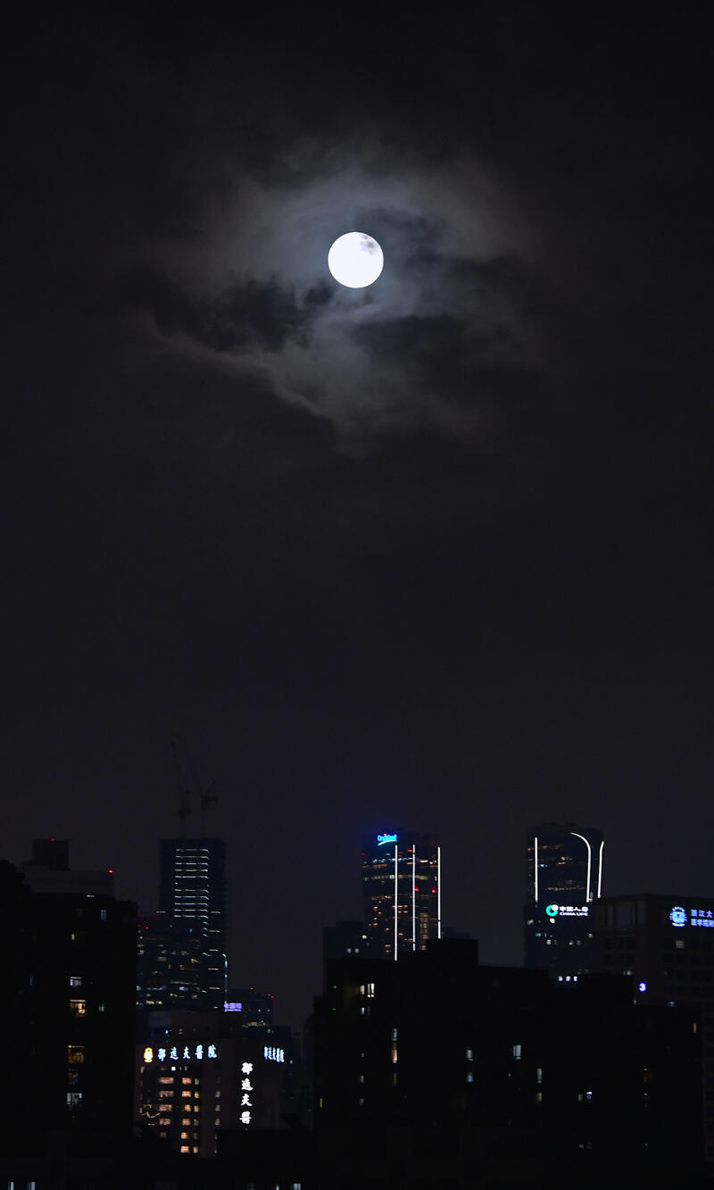 11月5日,夜幕降临的杭城上空,虽厚云密布,但本年度的“超级月亮”还是透过云层短暂露脸。
