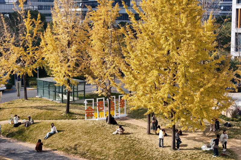 11月22日,杭城在暖意融融中迎来了二十四节气的“小雪”。位于浙江国家大学科技园的银杏林,在冬日暖阳的映照下,呈现一片灿烂的金黄,吸引了众多市民和游客前来打卡拍照。